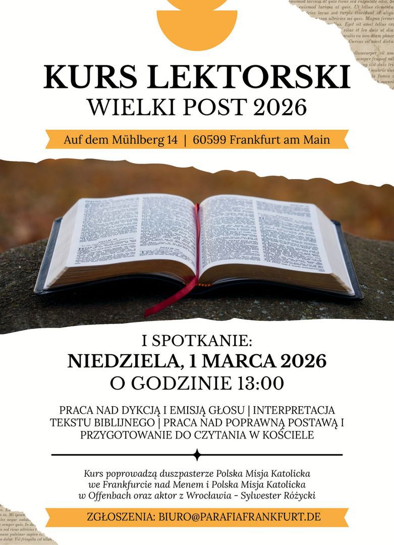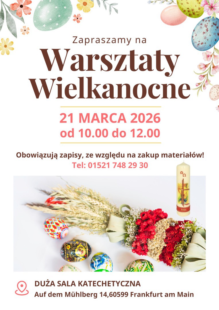 Serdecznie zapraszamy dzieci w wieku 5-7 lat na katechezy w soboty od godz. 12:30 do 13:15. W czasie ferii szkolnych w Hesji katechez nie ma.